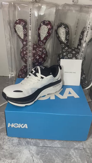 The Hoka One One Bondi 8 in White Black combines maximum cushioning with responsive energy return, engineered for runners seeking comfort on long distances. Its signature Meta-Rocker geometry promotes a smooth, efficient stride while the early-stage Meta-Rocker transition keeps you moving forward effortlessly. The plush midsole absorbs impact without sacrificing ground feel, making it ideal for daily training and recovery runs. Lightweight yet supportive, this neutral shoe delivers the premium comfort Hoka is known for.